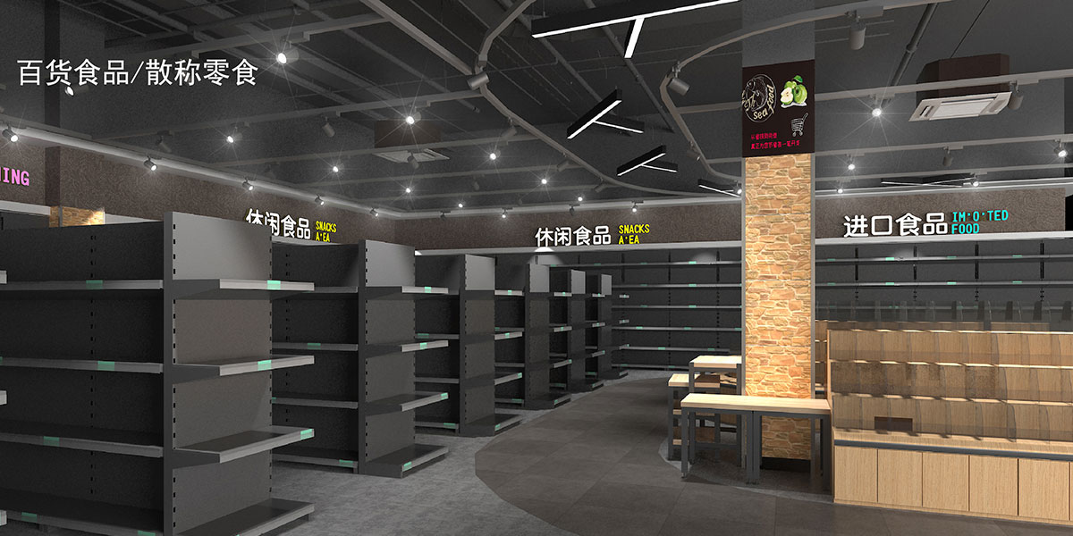 超市食用品區貨架