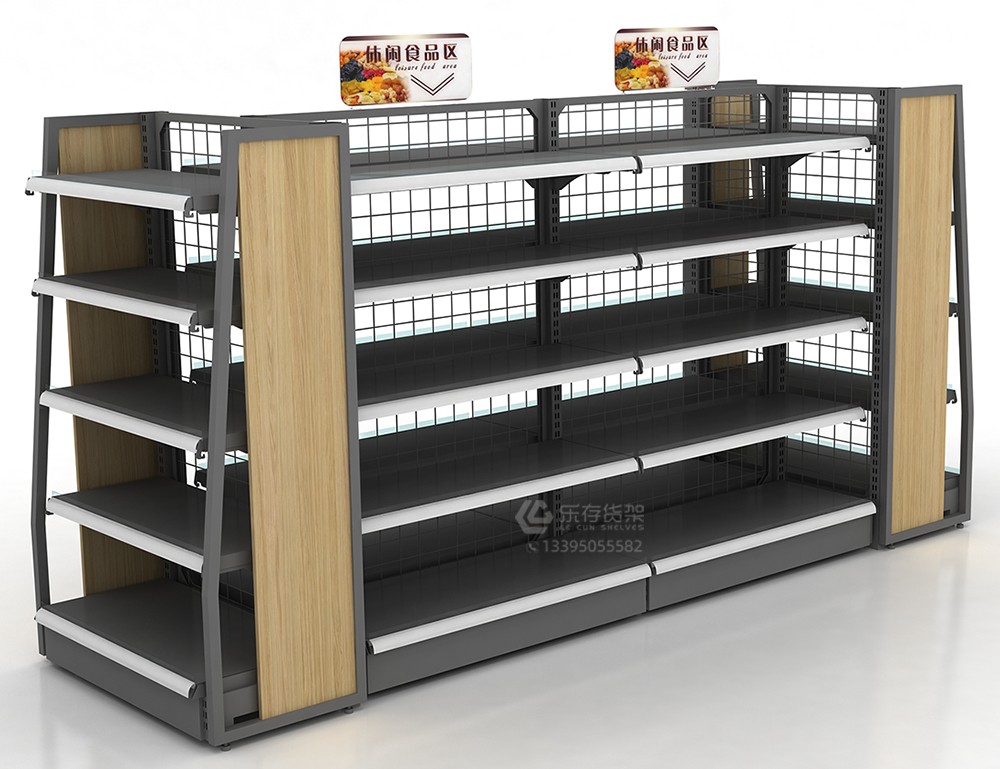 【特點】精選優質冷軋鋼材打造整體框架,加粗加固網背板設計,再搭配簡約時尚的木質側板,多色可選,完美匹配各種超市便利店裝修風格,實用性與美觀性并存,有效增強超市商品展示的效果。貨架頂端可增配廣告牌分類牌,便于對所陳列的商品進行分類指示,對顧客購物形成有效引導,提升顧客購物體驗。